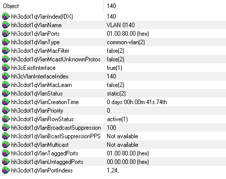 3. 通过查询表hh3cdot1qVlanMIBEntry 获取到字段 hh3cdot1qVlanPortIndexs(1.3.6.1.4.1.25506.8.35.2.1.1.1.19) [关联条件hh3cVlanInterfaceID==hh3cdot1qVlanIndex]