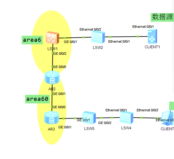 数据源在OSPF中的区域6,PC在OSPF中区域60,请问组播数据如何配置。