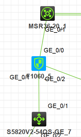 3、将F1060防火墙配置为透明模式,采用access的方式为R1、SW1透传业务。