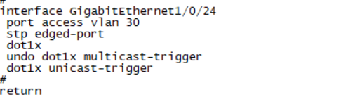 ·            端口GigabitEthernet1/0/1下的所有接入用户均需要单独认证,当某个用户下线时,也只有该用户无法使用网络。