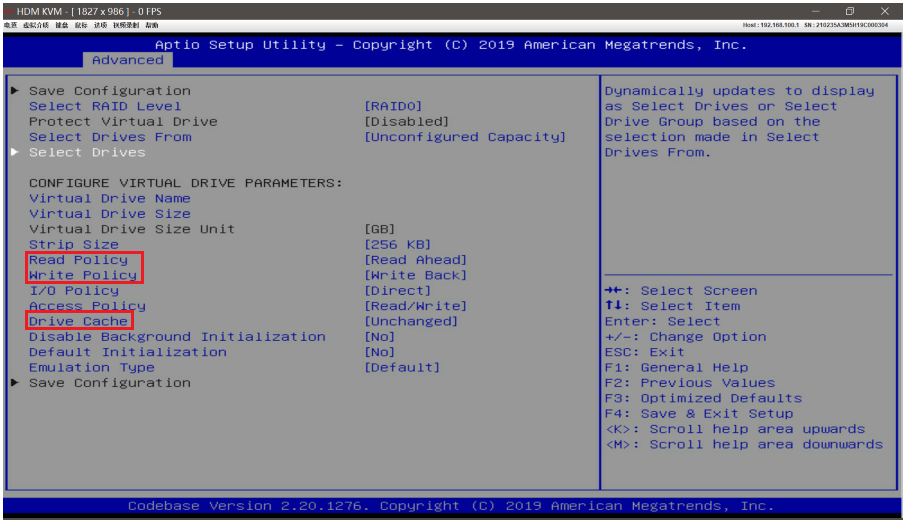 该缓存要求可不可以通过BIOS配置RAID时进行配置,如红框内的三个项目。