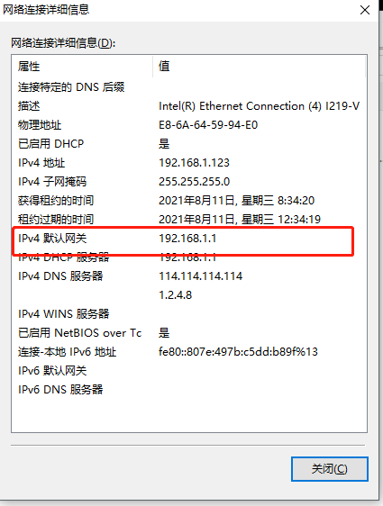 交换机端口自动获取到ip地址了,怎么查询网关?能否配置通过这个网关上网?