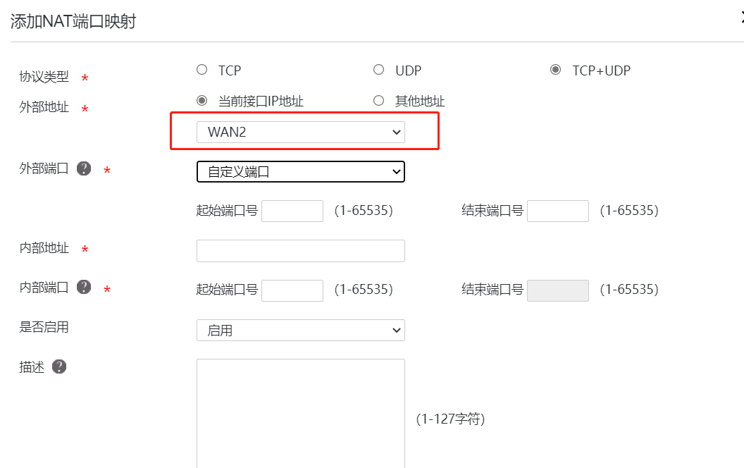 我现在有两个wan口,局域网是192.168.0.×,目前局域网识别的是wan1的公网地址,但是我现在想映射wan2的公网地址,应该怎么操作呢?端口映射接口已经选择了wan2,但是不通
