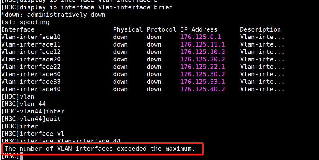 手中有一台,H3C S5120 24P -EI的交换机,需要创建多个vlan-interface ,但是超过8个vlan-interface 的时候就无法继续创建了。