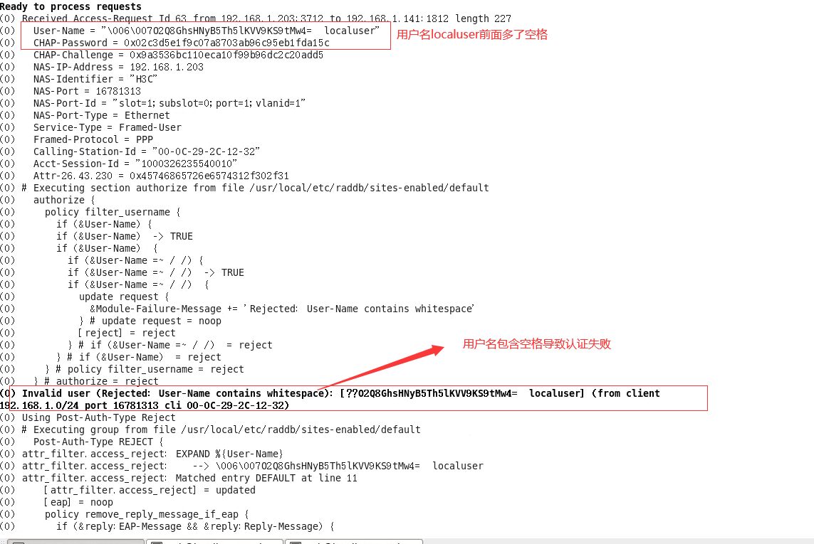 是我的交换机配置有什么问题吗?或则和radius可以怎么把这个空格去掉呢? 向各位大佬求解决方案