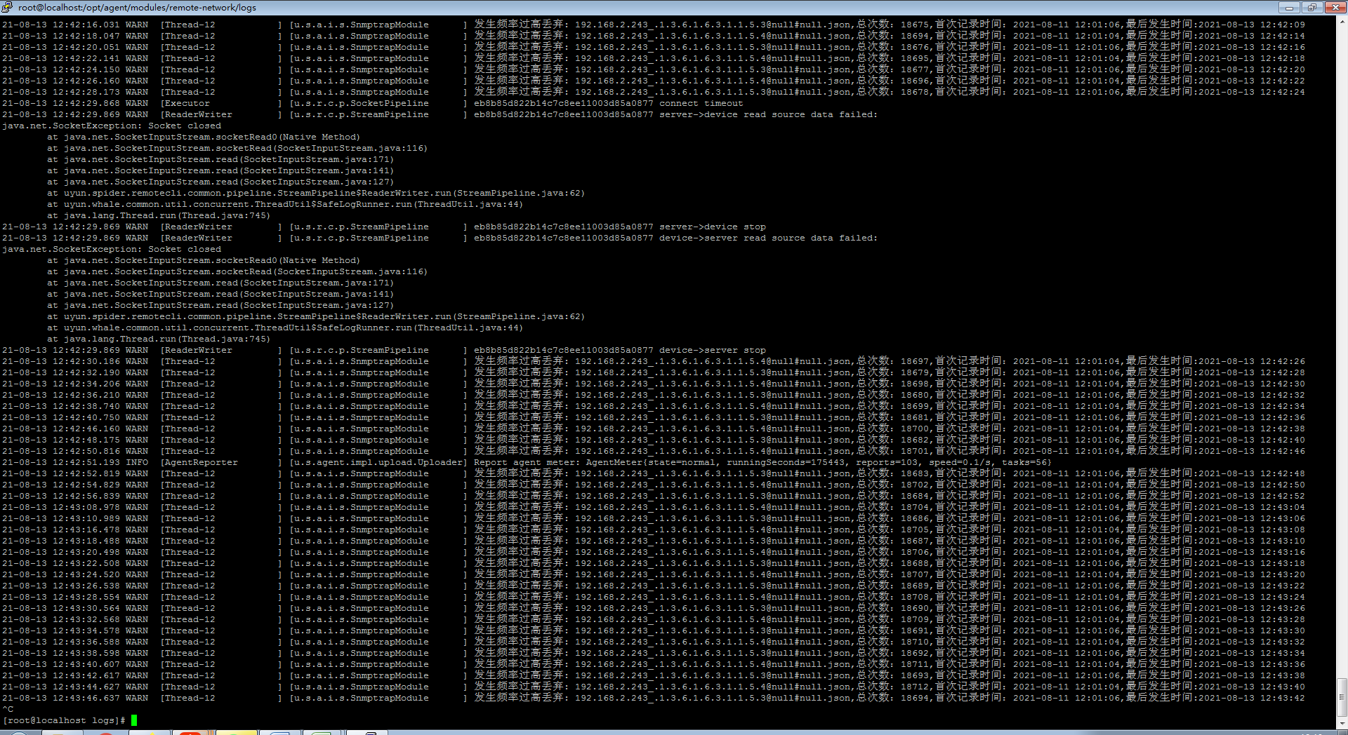 有报错read source date failed,建议检查ac上和服务器的snmp配置,同时关注ac上的log,看一下是否存在异常日志