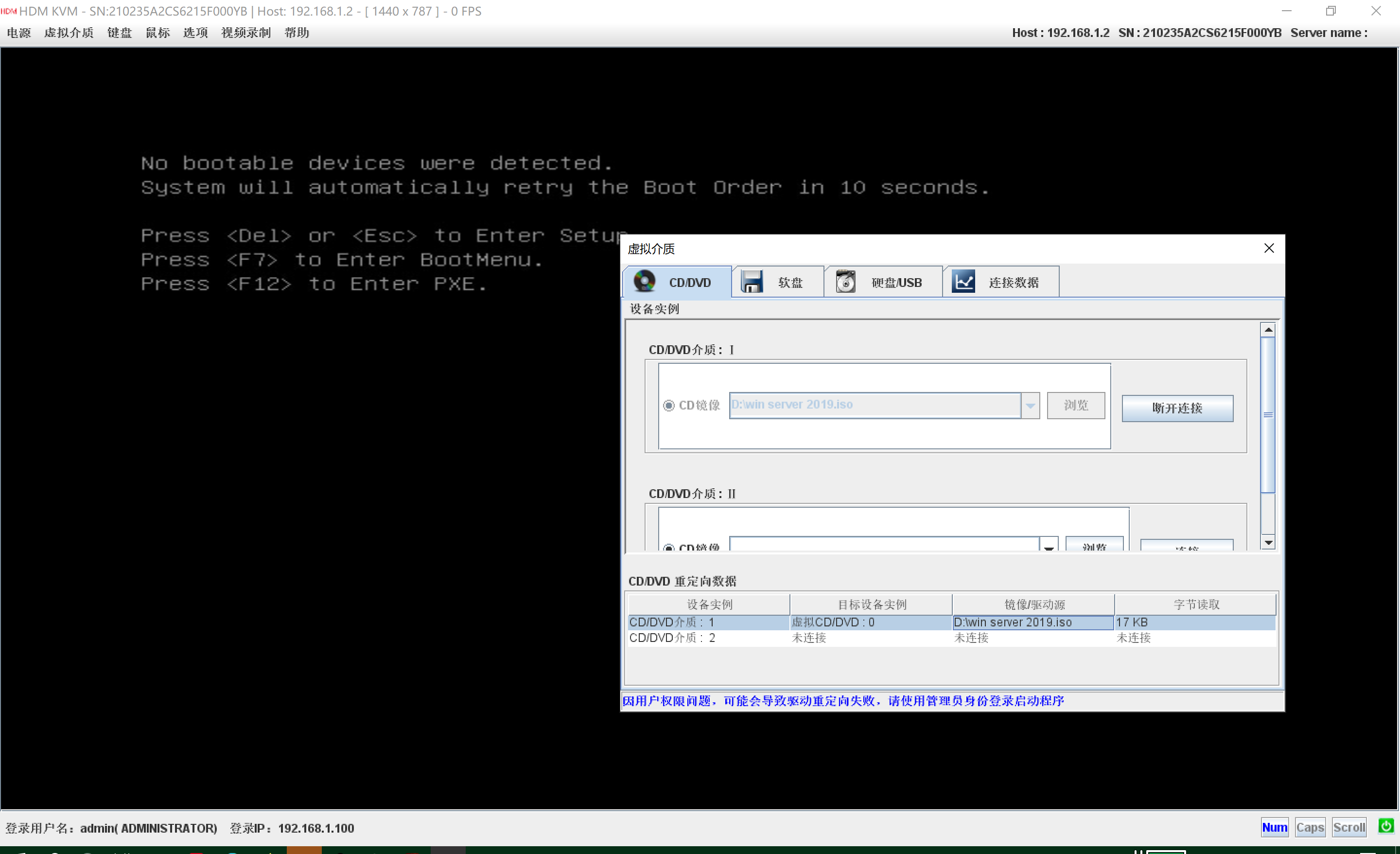是通过HDM KVM 挂载的虚拟介质 F7没有CD