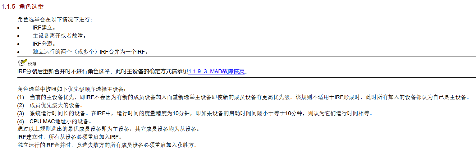 如果原来就做了irf(就是之前就有至少两台设备),那么irf为了保持稳定依然会沿用现在的主设备(就算新设备的优先级更高),除非把现在的主设备断电或者遇到机房停电导致所有设备重启才会重选。