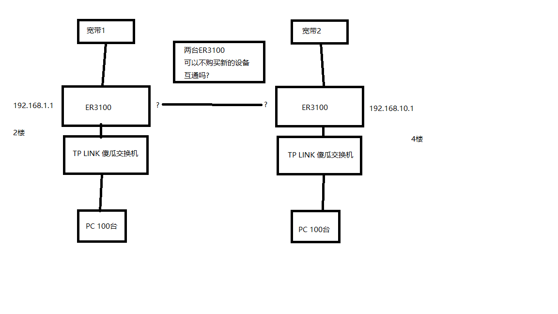 问个问题, 现在有两台ER3100 一台在2楼IP段为192.168.1.1 一台在4楼IP段 192.168.10.1 两层楼有网线,