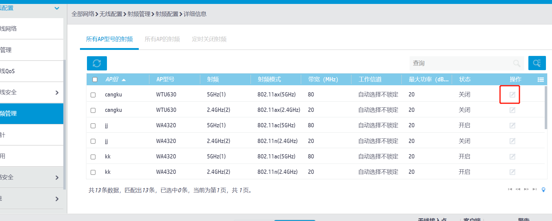 然后弹出的页面就是让他调整AP radio的功率。