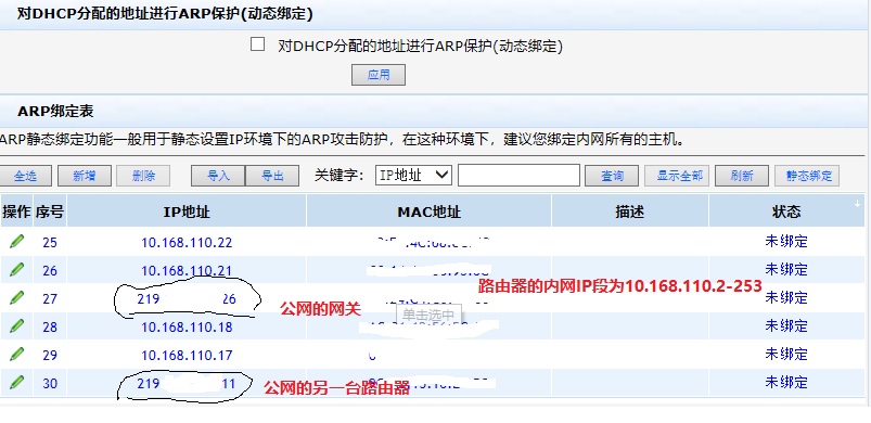 同一交换机下ER3200G2路由器ARP静态绑定列表里可以看到公网网关和其他路由器的公网IP正常吗?