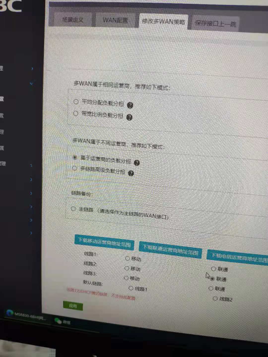 如图 我在选择多WAN 策略时,不能选择 基于运营商的负载分担。 提示我: 线路1为DHCP模式链路,不支持此配置 。这是什么意思