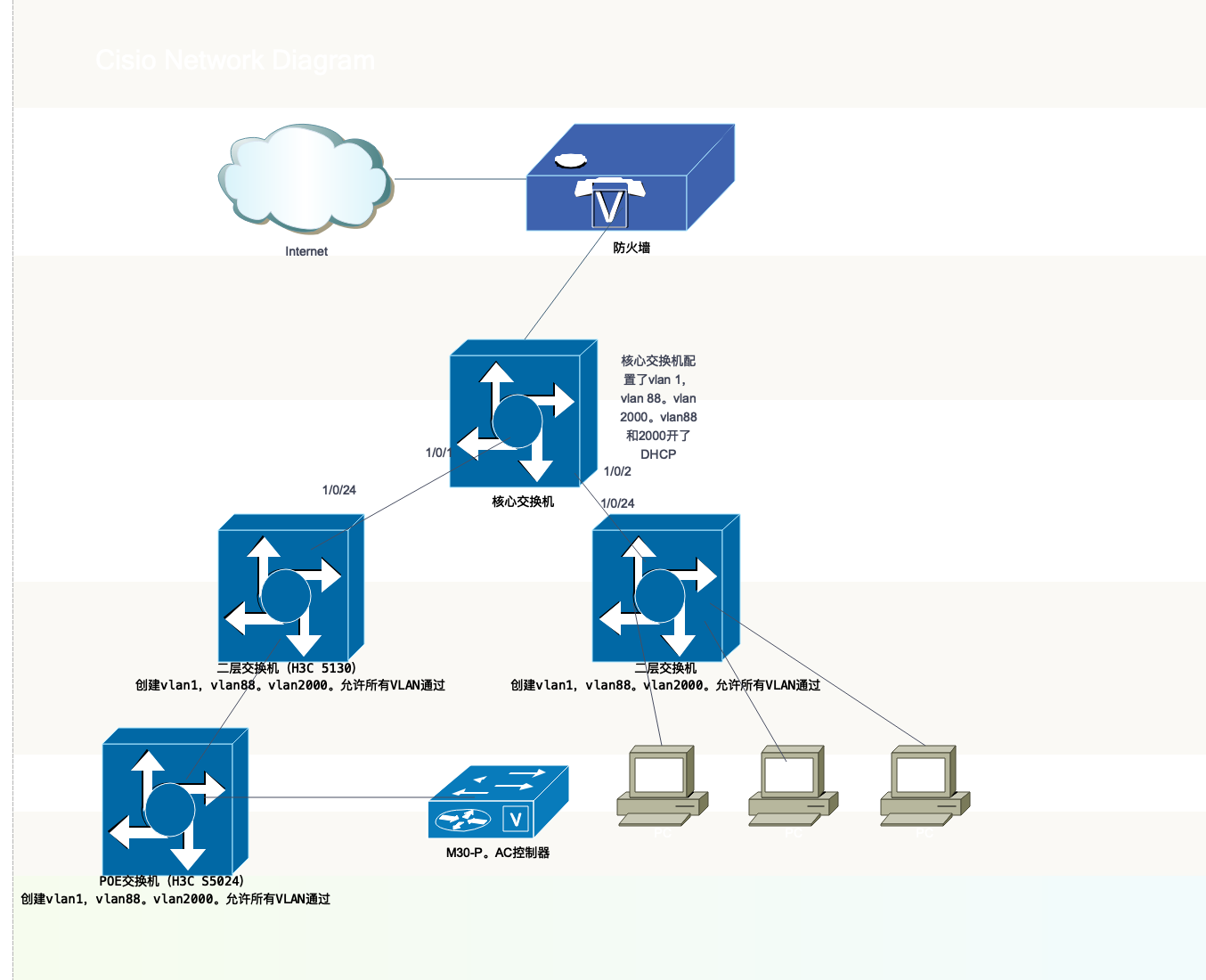 核心交换机划了3个VLAN 。vlan1,vlan88。vlan2000。vlan88和2000开通了DHCP。正常有线上网用 VLAN1 。vlan2000用无线。现在遇到无线的二层交换机一接上去。整个网络就丢包延迟大