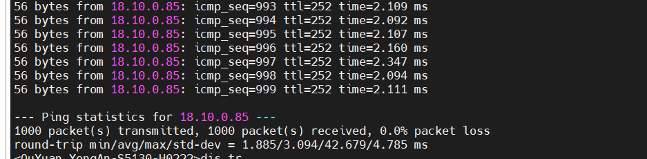 当我把25口down掉,我用汇聚交换机2ping核心无丢包