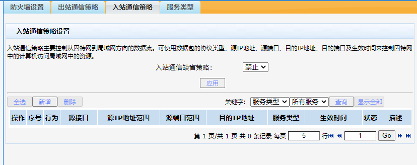 设置当虚拟服务器列表中如果不存在对应的映射项时,对报文的处理方式(主页面。选择“丢弃”或“重定向到DMZ主机”,单击<应用>按钮生效) | |
