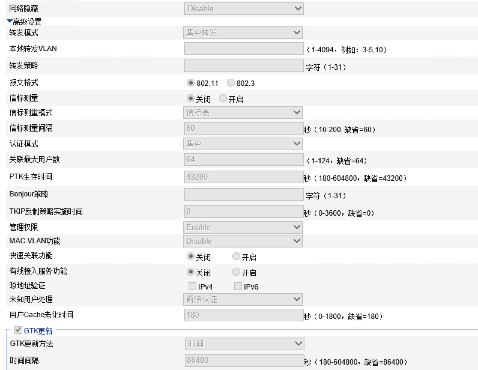 无线模板没有开启,原因是wep的加密方式,不能和rsn一起使用,rsn是和wpa/wpa2配合使用 的,将加密方式换成wap2吧,另外,建议用命令行,这个web界面,看着实在累,命令行的,配置哪去找哪,非常直接、简单,