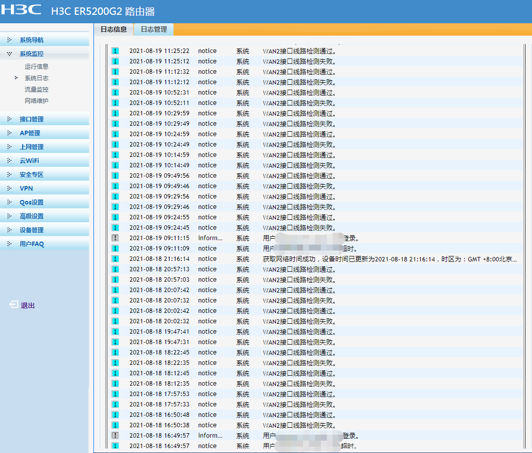 修改WAN2连接速度和双工模式,周末两天内只出现过一次检测失败,今天出现一次检测失败。