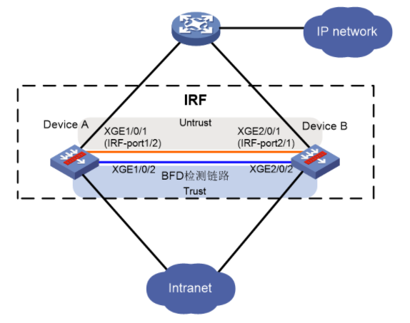 图1-15 IRF典型配置组网图(BFD MAD检测方式)