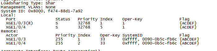 想问下 这里显示的两端操作key都不一样。flag位也有一个不一样 会影响LACP报文交互吗。