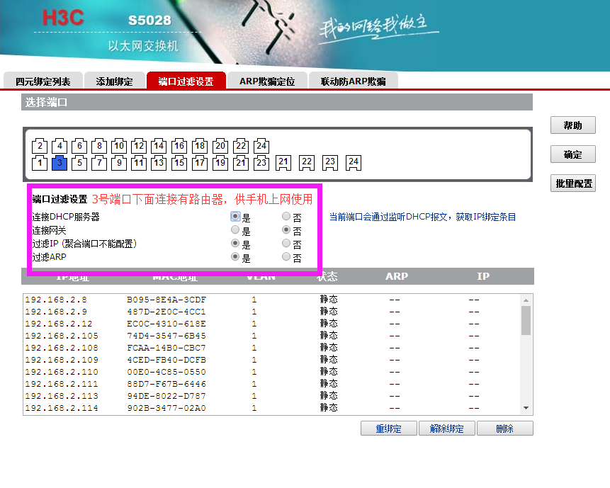 不是1号端口连接dhcp服务器么?怎么3号也连接吗?