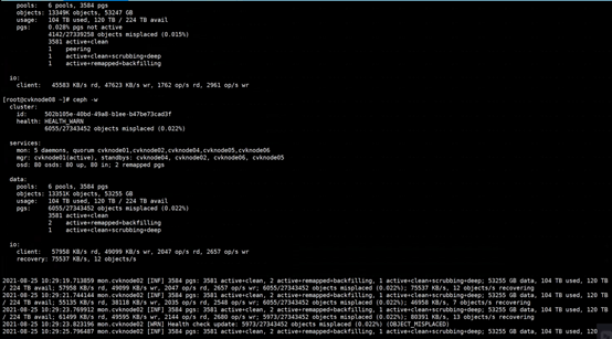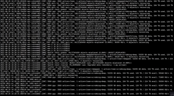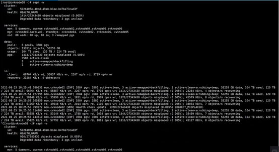 前台存储健康度99,后台ceph-s ceph-w回显如下,objects misplced的数值会从高到0、再从高到0,反复这个过程。是什么原因呢?
