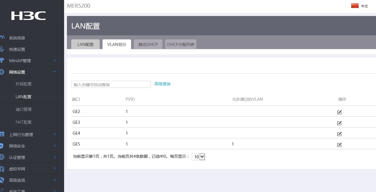 想使用H3C的ap产品,路由器是MER5200,ap开启选项里面,AP管理使用VLAN点开是空白的,各位给看看原因。