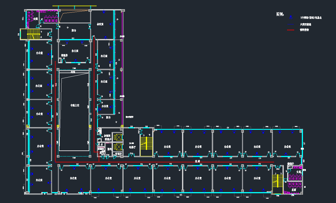 下面的CAD图,ap要安装在走廊的什么位置才能达到每个房间信号全覆盖。除了ap装在办公室内。