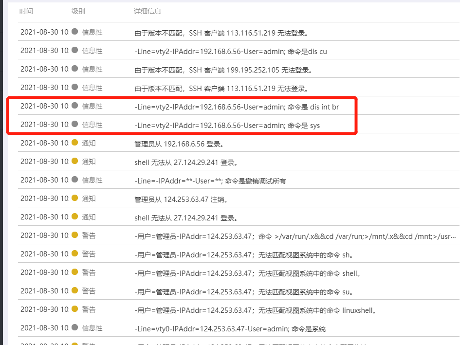 这个是登录设备做了命令的操作,登录IP为192.168.6.26