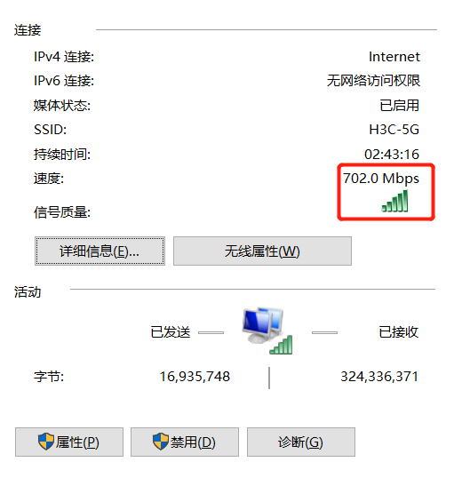 先看本机电脑无线网口或者有线网卡协商速率多少