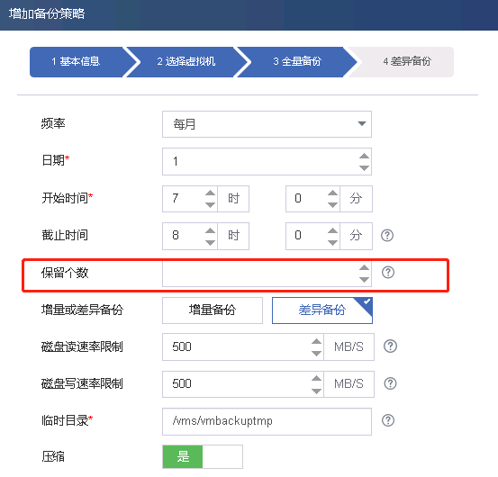 CAS上差异备份虚拟机,可以设置差异备份的保留份数吗,还是说要自己手动去删除?备份策略里确实是有保留份数的设置,但是是在全量备份这个界面,我理解是全量备份的保留份数,