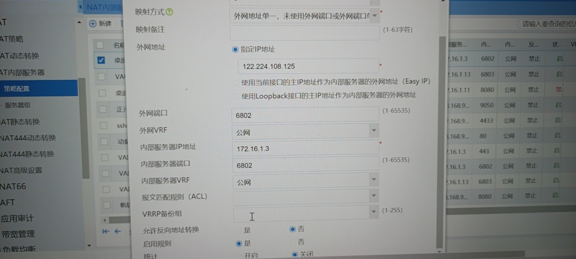 可以使用nat server将内部服务器映射出来,以下是配置案例: