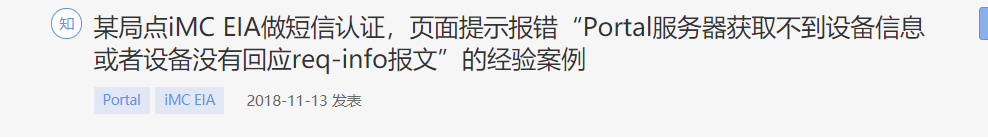 某局点iMC EIA做短信认证,页面提示报错“Portal服务器获取不到设备信息或者设备没有回应req-info报文”的经验案例 - 知了社区 (h3c.com)