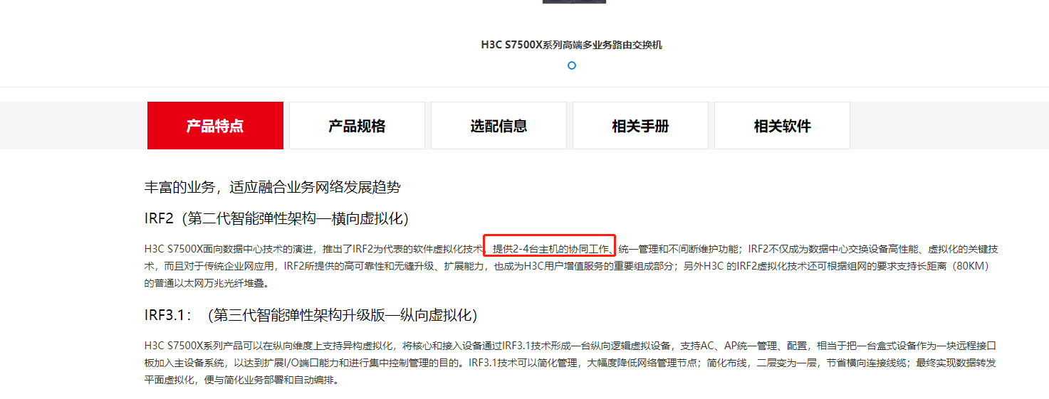 其他组网情况时,IRF中的成员设备最多可以为4台。