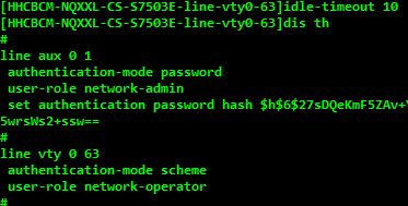 我在交换机的line口下配置了idle-timeout 10 0 ,dis th 为什么看不到这条命令啊?是不生效还是默认有登录超时?配置针对SSH用户。