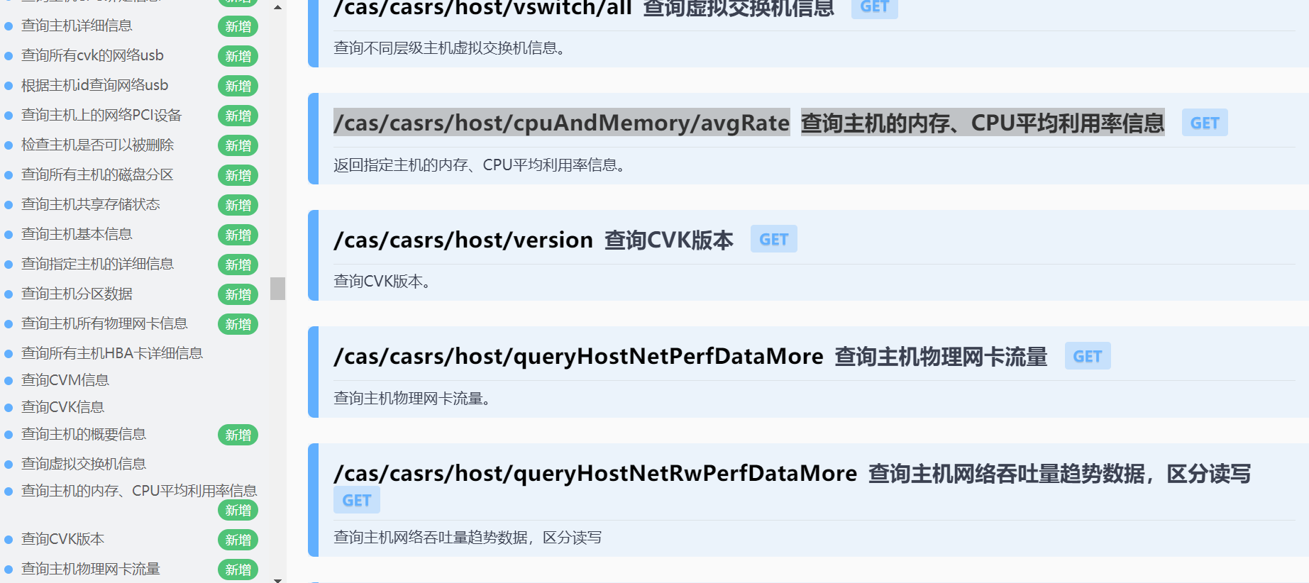 CAS主机的性能监控数据有能调用的接口吗?我看了下相应的CAS API文档,貌似没有找到