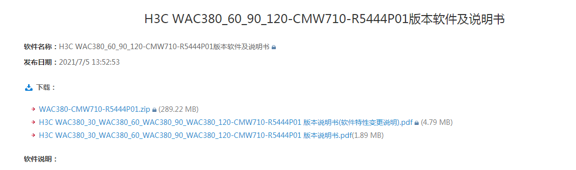 可以查看WAC380的软件版本说明书: