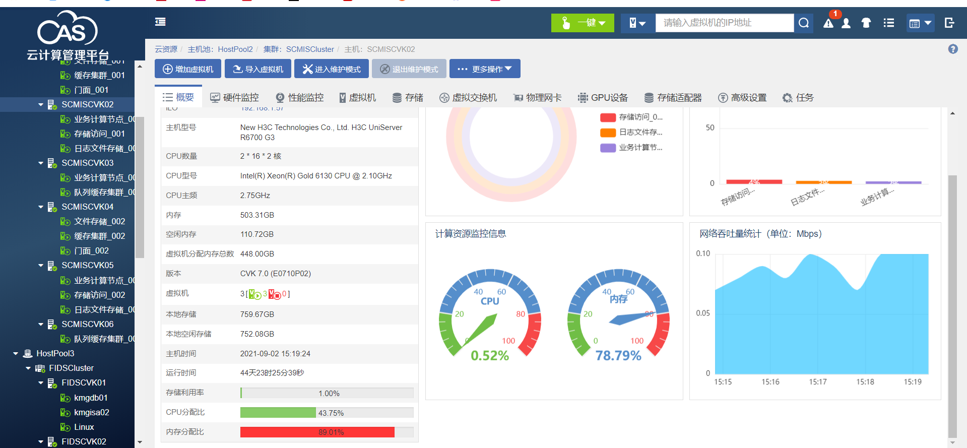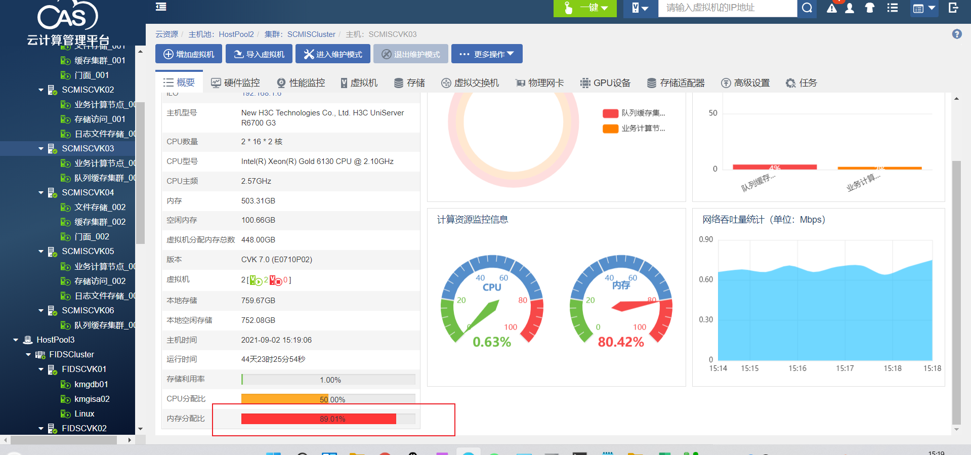 主机同样的内存分配比,都是89%,但是唯独有一台一直会提示主机内存利用率达到或超过80%,当前内存利用率80%。并且报警这台虚拟机内存使用率也很低,虚拟机CAStools都装了