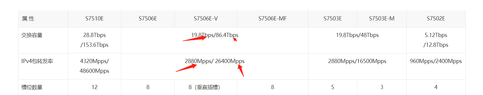 看之前的知了上面说,盒式的两个交换容量最低的是单台,最高的是多台堆叠后的量。