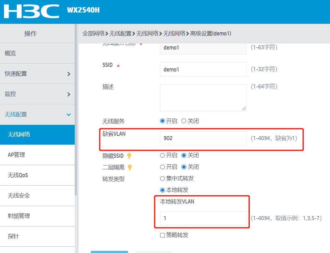 请问各位大佬,这边配置的缺省VLAN,以及本地转发VLAN的区别是什么?