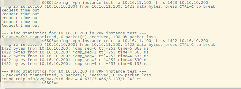 这..明显就是同段互访没有上网关,然后分片超了MTU,甚至没分片
