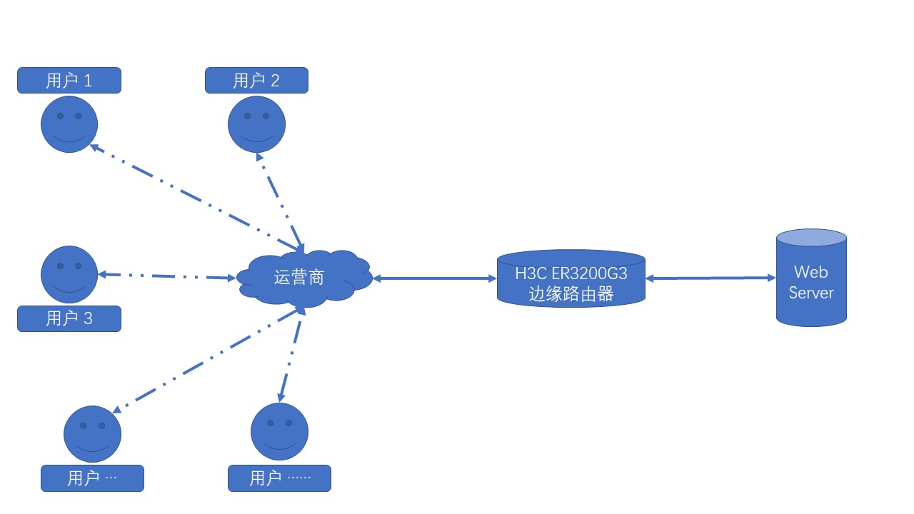 网络结构很简单(下图1),H3C ER3200G3路由器通过PPPoE接入互联网(非固定IP,每次拨号获得的IP都不同于上次),路由器下有一个服务器,服务器开启并绑定了DDNS服务,路由器开启地址和端口映射到服务器,在互联网上的用户们通过域名可访问服务器,某些使用场景希望在互联网中的用户可以先与ER3200G3路由器建立IPsec加密之后再连接服务器。