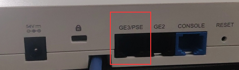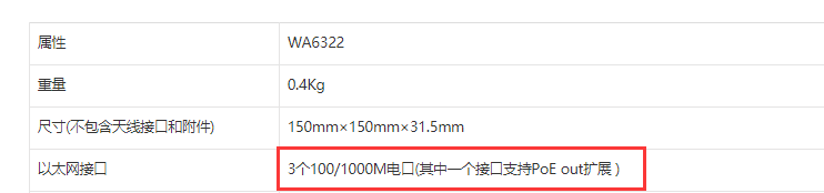 GE3/PSE | · IEEE802.3 · IEEE802.3u · IEEE802.3af · IEEE802.3at | 10/100/1000M以太网电口,作为设备的下行接口可支持对标准PD设备供电。对应MAP文件中的GE1/0/3接口,对应AC配置中的gigabitethernet 3接口 |