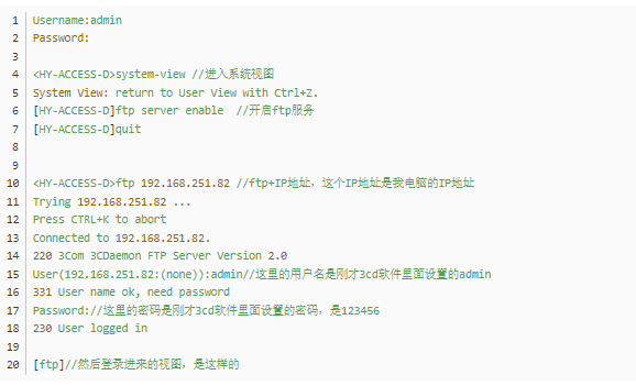 1:在交换机上开启ftp 服务,然后登录到客户端的FTP