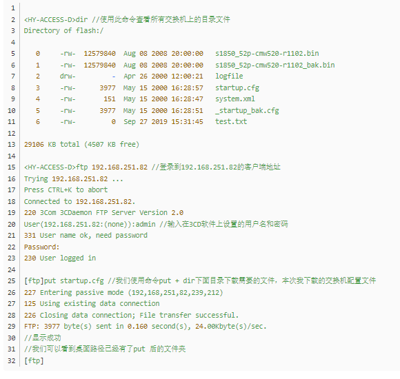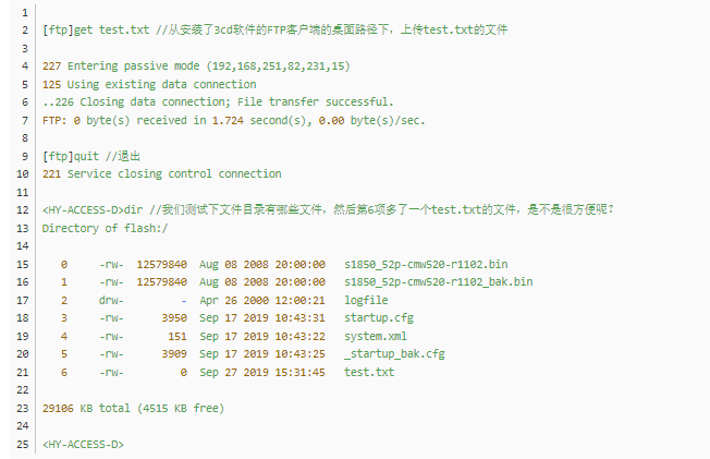 上传文件到交换机用GET命令(常用于更新交换机配置文件)