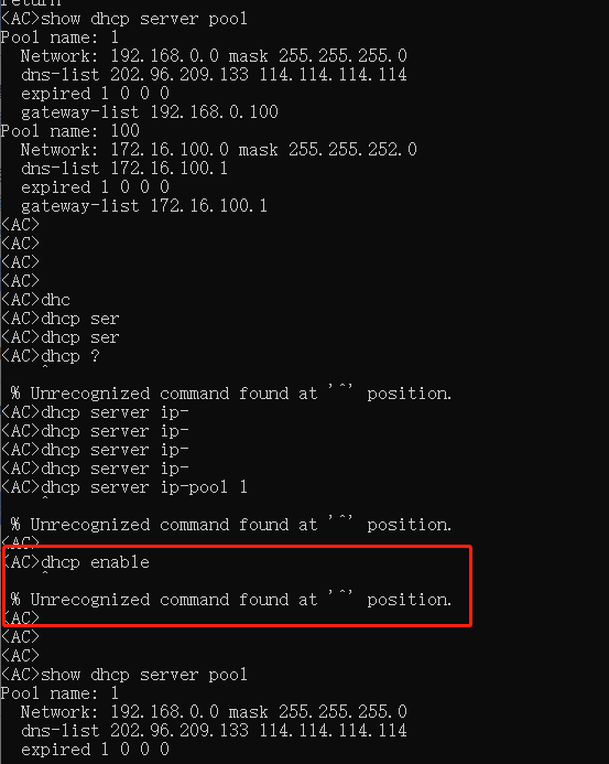 dhcp命令无效