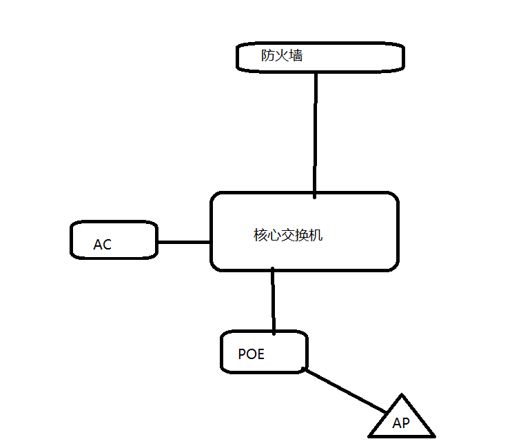 防火墙做出口---核心交换机---胖挂AC----poe交换机---AP
