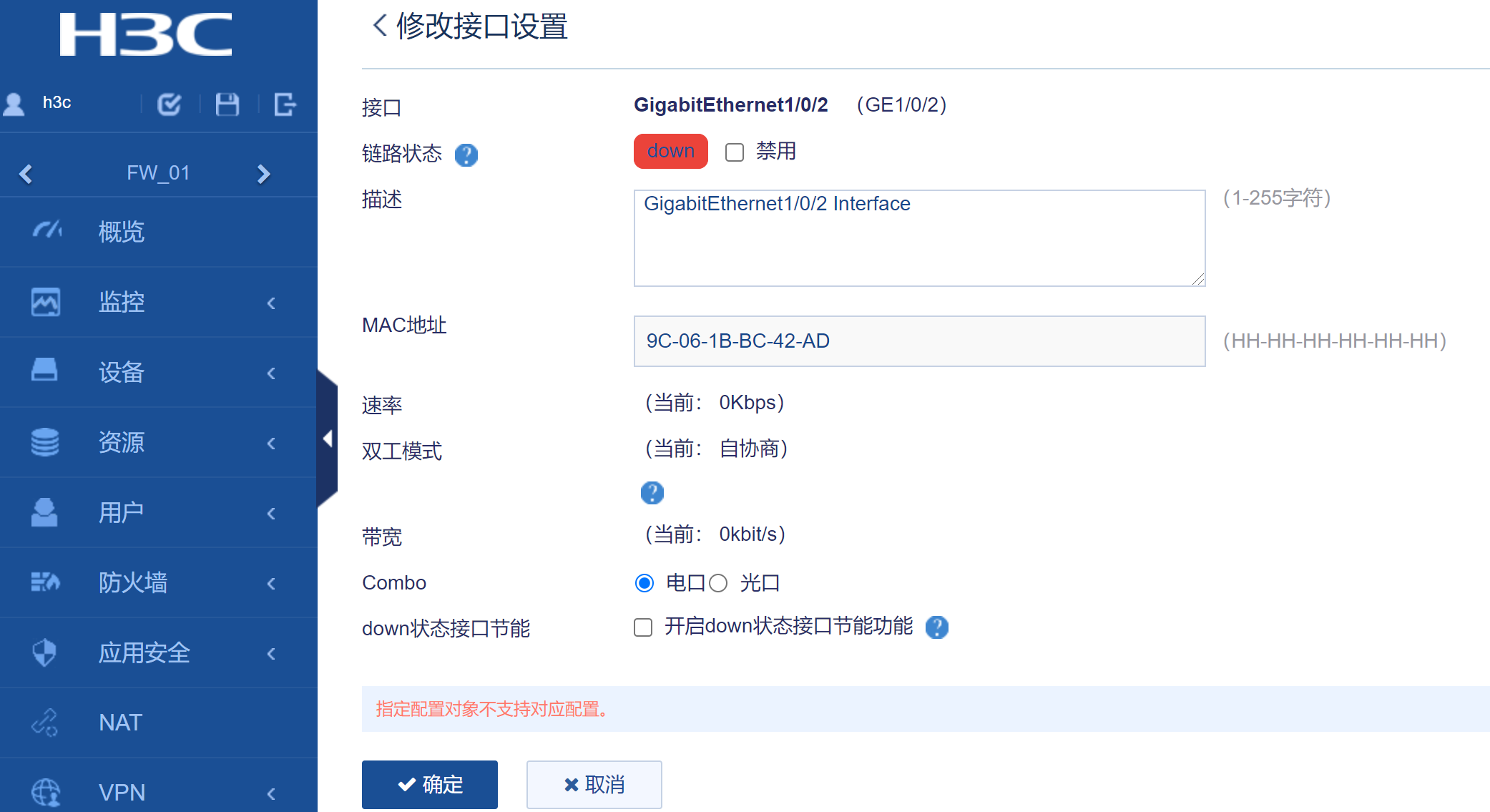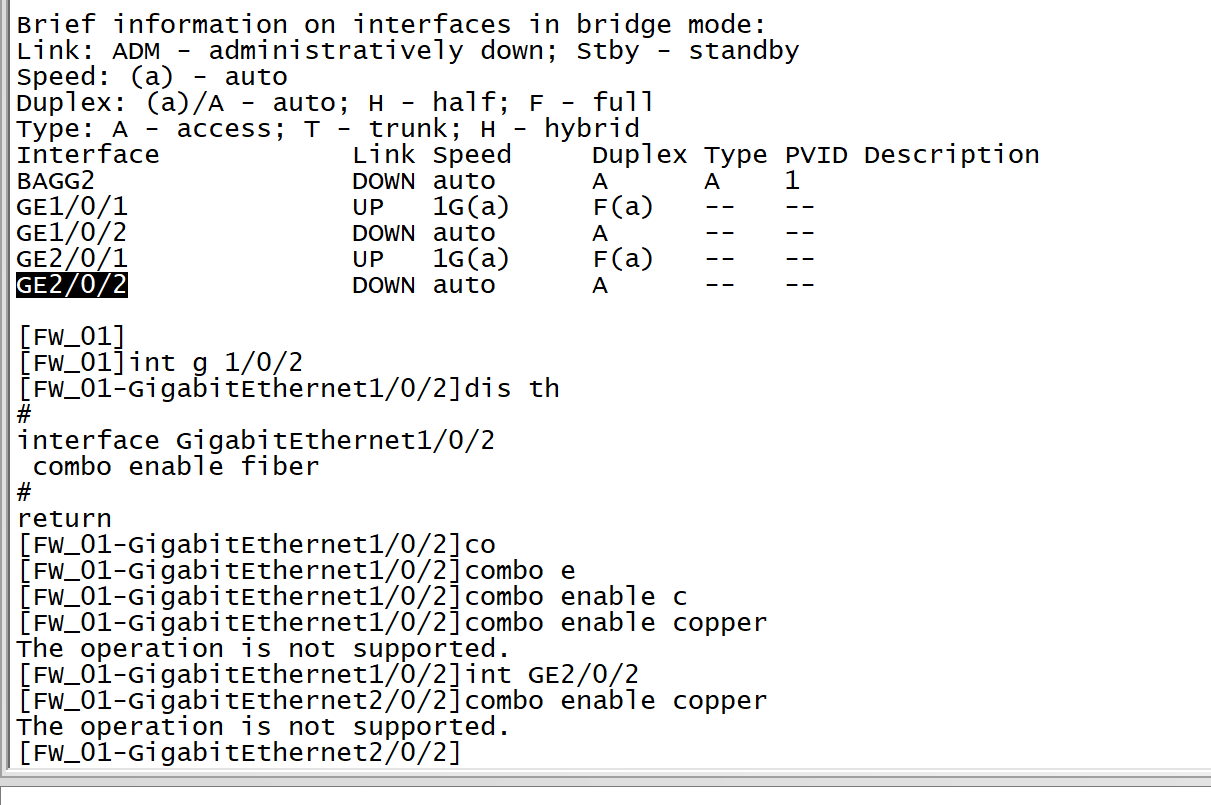 10506的防火墙插卡LSUM1FWCEAB0 combo口无法改成电口