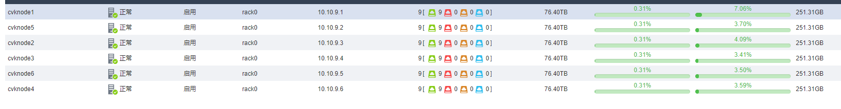平台初始化完成以后 6节点,每节点存储容量76.4T