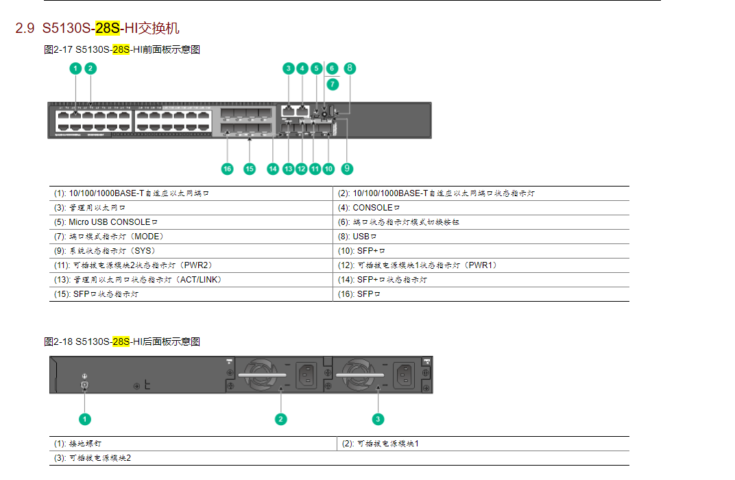 图2-17 S5130S-28S-HI前面板示意图