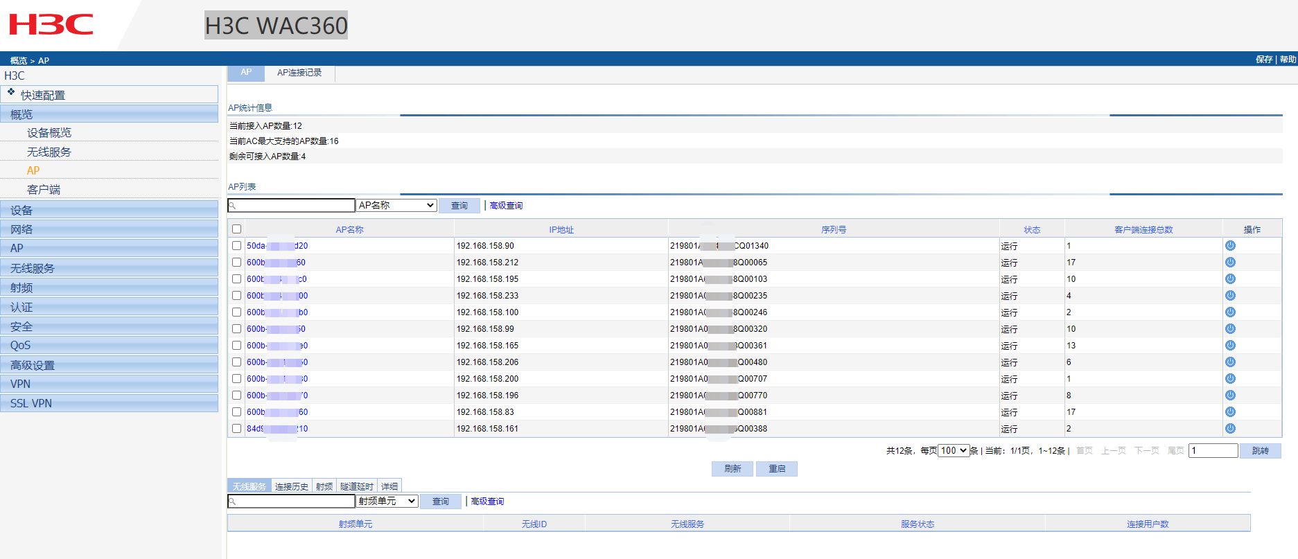 3H3C WAC360 共12个wifi热点